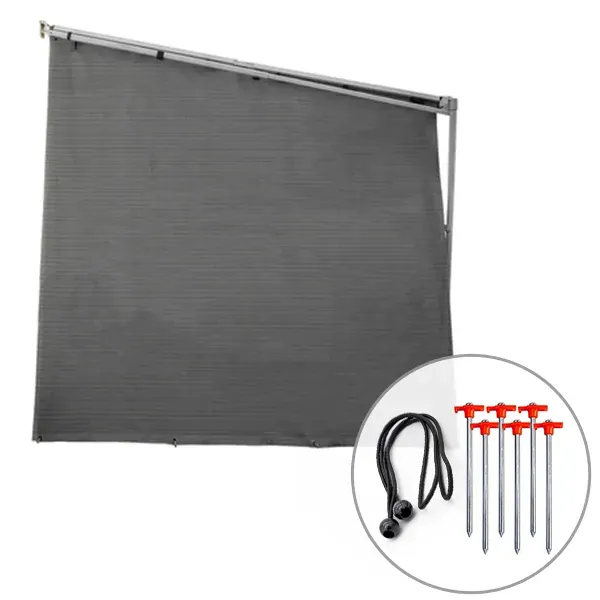 Made of Textiline® fabric, the Sunblocker Long Side Wall provides UV protection and 60% light reduction, reducing the temperature inside. The exceptionally strong and durable Textilene® fabric is an outdoor furniture grade coated polyester fibre, which we have put through extreme tests to ensure years of recreational use. Suitable for most brands of awnings 2.75 - 5.80m long, all at 1.95m in height, and finished off in a neutral grey colourway to blend in with any awning or caravan colour.