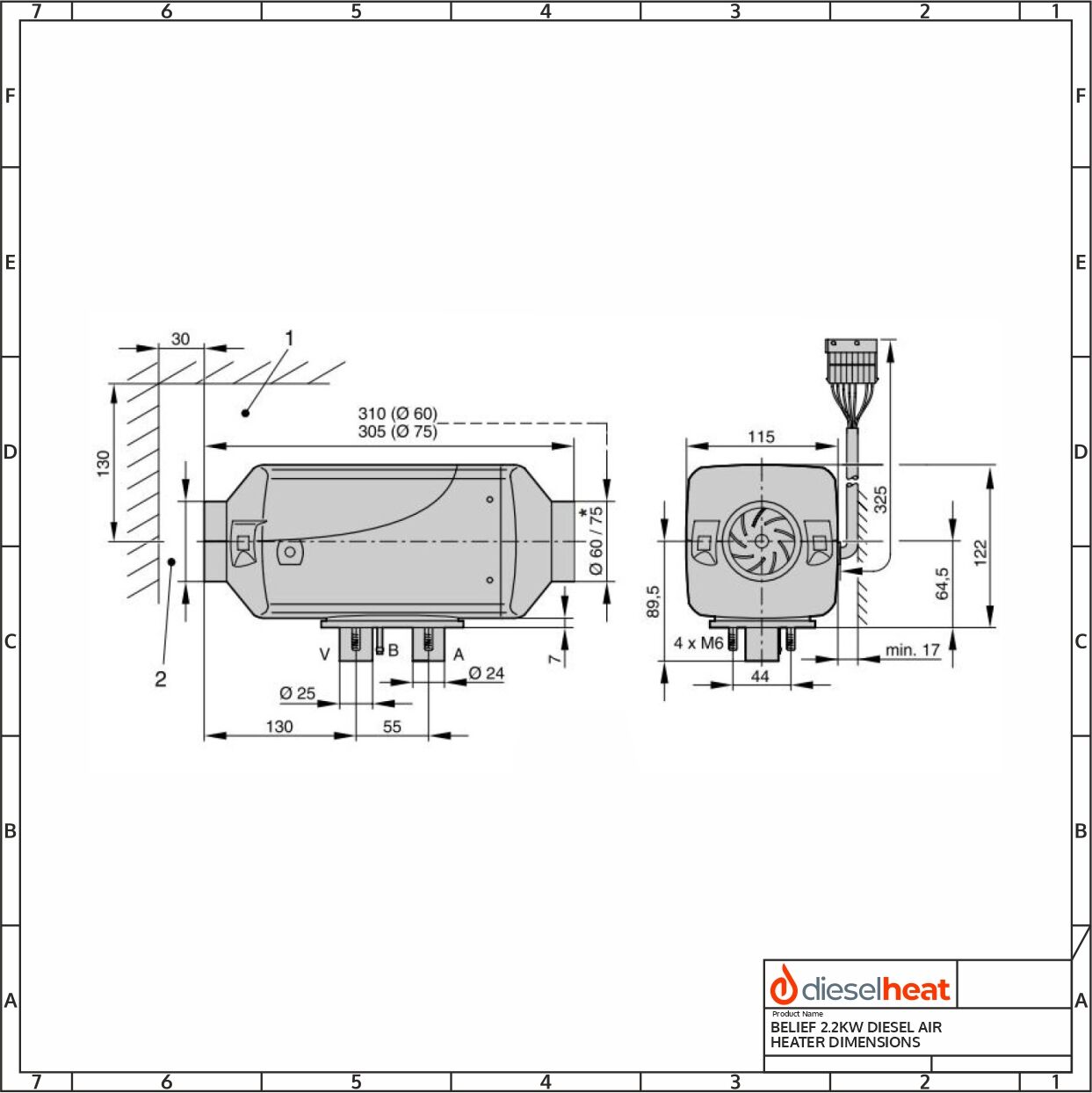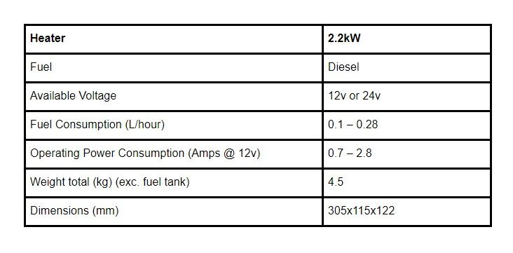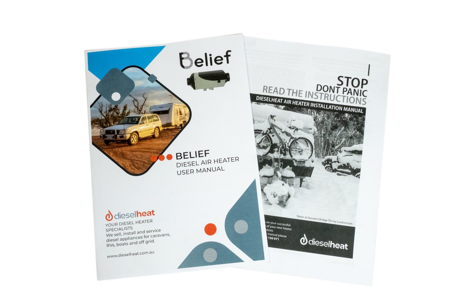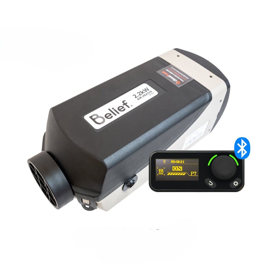 Belief 12V 2.2kW Diesel Air Heater Full Installation Kit, 2 Year Warranty. Belief 2.2kW (ALT SP MODEL) diesel air heater full installation kit for vans up to 24ft, campers, flat floors etc. The Belief kit includes all components for a quiet, reliable, quality installation. Backed by 2 year warranty, spares and service from a specialist diesel heater company at a price hundreds of dollars below the European alternatives.