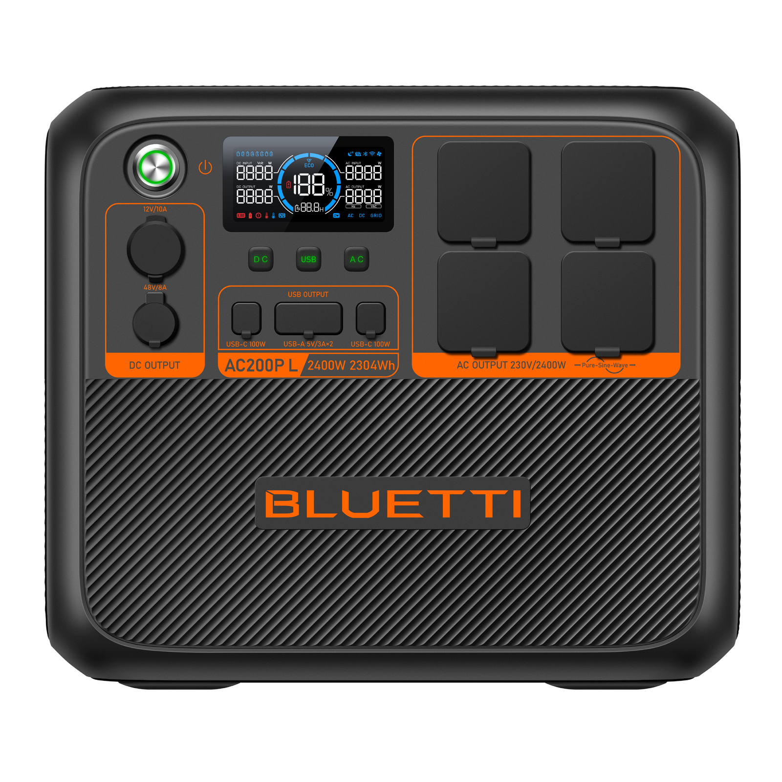 Bluetti AC200PL Portable Power Station 2304Wh, 5 Year Warranty. The BLUETTI AC200PL is your go-to choice when you travel with your RV. With a hefty 2,304Wh-8,448Wh capacity and 2,400W continuous output, it can handle any gadget on the road, making your outdoor life feel like a home far away from home.