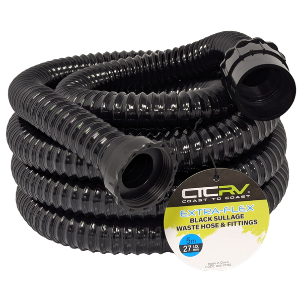 Coast RV 5m Roll Black Extra-Flex Sullage Waste Hose with 40mm Fittings, 27mm I.D., 1 Year Warranty. COAST RV Black Sullage Waste Hoses are designed for caravan enthusiasts seeking top-tier performance and excellent value. Available in 5m and 10m lengths, these hoses ensure efficient drainage of grey wastewater from your kitchen sinks and showers.
