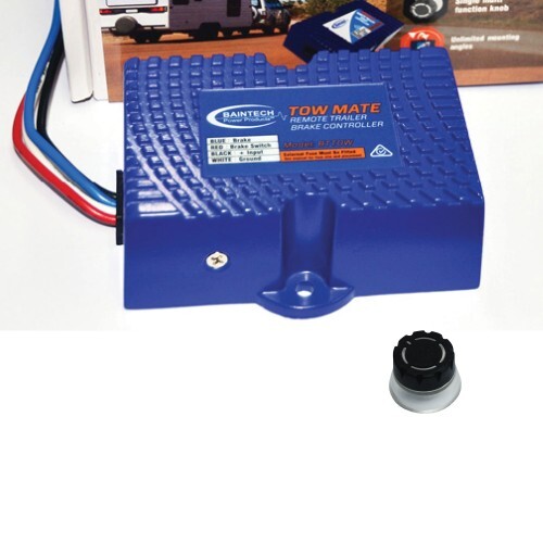 Baintech 12V Tow Mate with Remote Trailer Brake Controller, 1 Year Warranty. The Baintech Tow Mate operates with a pre-set braking force utilising microprocessor technology. This new generation of brake controllers has been designed for both single and dual axle trailers using negative earth (ground) systems only. Rugged and compact, it is easily installed with the simple connection of four wires and comes with a remote control. The remote control is simple to install and makes adjusting and monitoring the brakes even easier - it can be located up to 1m from the brake controller. The Tow-Mate incorporates an override function for independent braking of the trailer from the vehicle brakes – which helps to prevent potentially dangerous swaying and snaking.