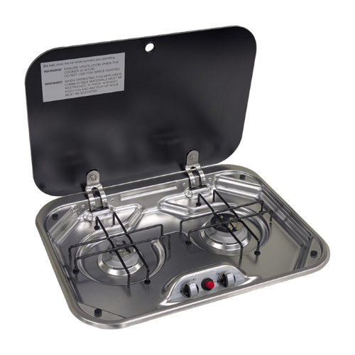SPHERE 2BNR GAS, 1 Year Warranty. Built with a durable stainless steel body and finished with a black tempered glass lid, it’s as stylish as it is practical. The two burners offer a balance of power and efficiency, while the piezo ignition and rotary controls keep operation simple and familiar.