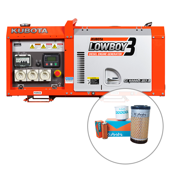 The Kubota GL9000, 8.8kVA Diesel Generator, 2 Year Warranty. Series 3: has a compact design and low noise which makes it suitable for a large range of applications while the large fuel tank and exceptional fuel economy extends operating periods between refuelling.