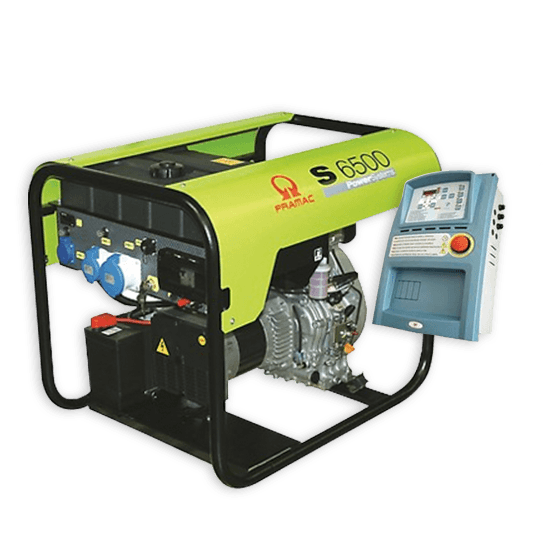 Pramac 5.9kVA Auto Start Diesel Generator + AMF, S6500 + PY000A0000S, 3 Year Warranty. The Pramac S6500 is strongly built auto start generator designed for domestic or small business backup. Powered by a highly reliable Yanmar diesel engine, with a 24 litre fuel tank which provides 16 hours run time at 75% load.  The unit produces a maximum power of 6.5kVA and a continuous output of 4300 watts. This generator is used for backup to mains fail applications.