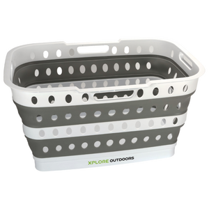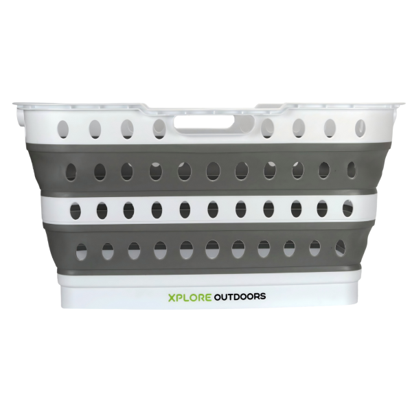 Xplore Outdoors Collapsible Laundry Basket with Fold-out Legs, 1 Year Warranty. Keep your campsite tidy and organised with the Xplore Outdoors Collapsible Laundry Basket. Designed for travellers who value space-saving convenience and practical design.