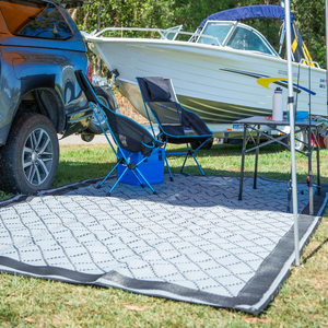 ACM 2x2.4 Crisscross Full Plus Annexe Mat Grey/Black, 3 Year Warranty. Experience the ultimate in comfort during your caravanning and camping trips with Affordable Camping Mats! These mats are ethically manufactured from recycled polypropylene so you can rest easy knowing you’re choosing a ‘feel-good’ mat that is eco-friendly, saving plastic from going into landfills.