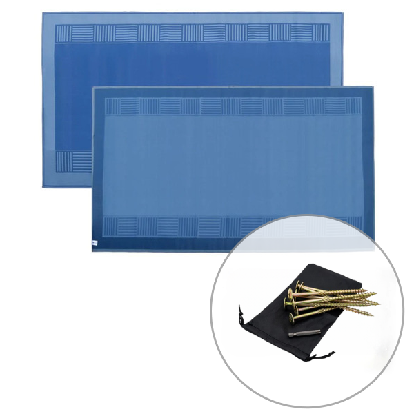 ACM 3x2.4m Square Pattern Annexe Mat Navy/Grey, 3 Year Warranty. Experience the ultimate in comfort during your caravanning and camping trips with Affordable Camping Mats! These mats are ethically manufactured from recycled polypropylene so you can rest easy knowing you’re choosing a ‘feel-good’ mat that is eco-friendly, saving plastic from going into landfills.