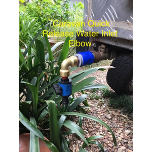 Adventure Pumps Quick Release Water Inlet Elbow, 1 Year Warranty. The elbow fitting is perfect for angling down heavy hoses filled with water to prevent kinking etc.