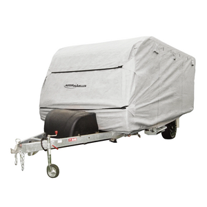 Aussie Traveller 14'-16' Pop Top Caravan Cover, 3 Years Warranty. The range of Aussie Traveller Premium Pop-Top Caravan Covers have been designed and manufactured to protect your caravan from the harsh Australian elements. Available in a selection of sizes, all with a waterproof breathable side panel, reinforced skirt and easy-to-fit design. Then range of covers will be sure to keep your caravan in pristine condition in the off season - at Aussie Traveller, we have you covered.