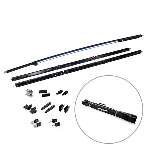 Aussie Traveller Black Anti-Flap Kit (AFK) Pro+ with Curved Rafter Bundle, 1 Year Warranty. Cassette awning setups made easy with the AFK & Rafter Bundle. Check the table below to see how many rafters you need, and add the LED light upgrade for a simple, handy lighting hack!