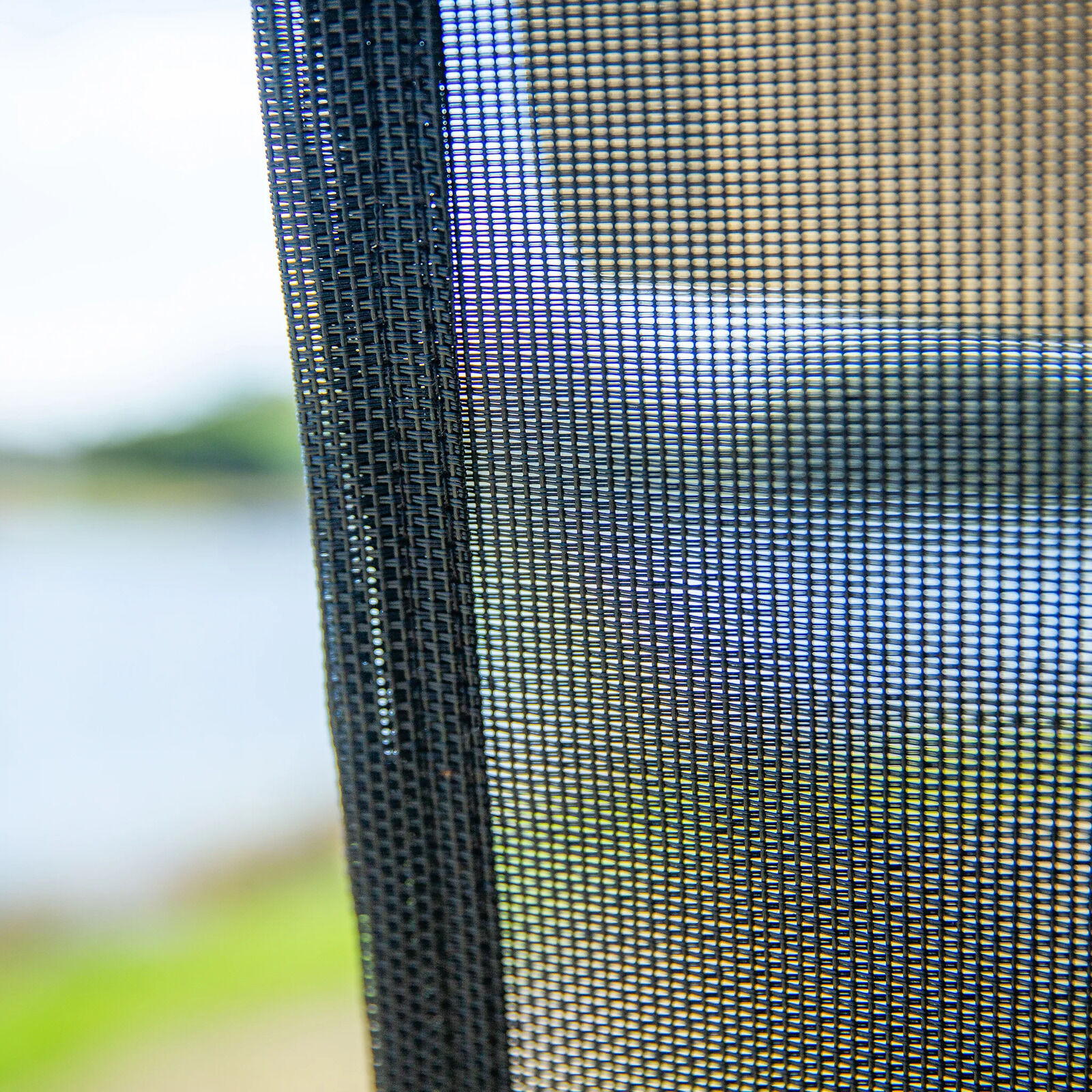 The Black Sunblocker End Wall features double weaving, providing 80% UV protection and light reduction, greatly reducing the temperature inside. This exceptionally strong and durable Textilene® fabric is an outdoor furniture-grade coated polyester fibre, which we have put through extreme tests to ensure years of recreational use.