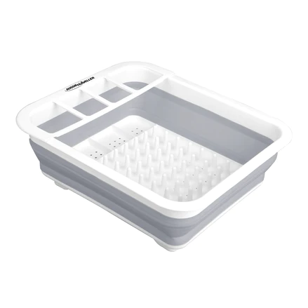 Aussie Traveller Collapsible Dish Rack, 1 Year Warranty. The Aussie Traveller Collapsible Dish Rack is the perfect addition to your caravan or camp kitchen. The drain holes allow for water to easily escape, and the side partitions can hold a range of cutlery. Its lightweight, compact, and easily collapsible design proves it an essential kitchen accessory, ideal for storing in compact spaces.