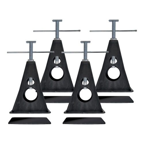 - Includes 4 heavy duty stands and 4 anti-sink plates for added stability