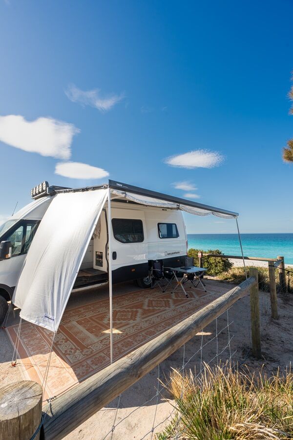 Aussie Traveller Rainblocker Privacy Screen Front and Rear Full Van, 1 Year Warranty. The Xtend Outdoors Rain Blocker End Wall offers superior privacy and reliable protection from both rain and sun. Perfect for use in busy campgrounds, this waterproof partition creates a comfortable barrier between you and neighbouring sites, while keeping your campsite dry and protected.