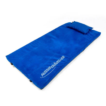 Aussie Traveller Single 4WD Luxury Mattress with Pillow, 1 Year Warranty. The Aussie Traveller 4WD Luxury self-inflating mattress is the perfect solution for those in need of a great night sleep whilst camping. This mattress offers pure comfort with its high density self-inflating foam at 120mm thick, providing you with plenty of support through the night. It also includes one self-inflating pillow, so you never have to worry about forgetting to pack your pillow. Whether you use it in your 4WD, tent, swag or even at home for visitors, with this luxury mattress you can be sure you’ll get a good night’s sleep.