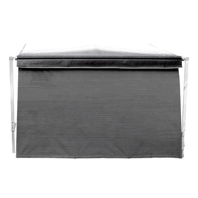 Made of Textiline® fabric, the Sunblocker Long Side Wall provides UV protection and 60% light reduction, reducing the temperature inside. The exceptionally strong and durable Textilene® fabric is an outdoor furniture grade coated polyester fibre, which we have put through extreme tests to ensure years of recreational use. Suitable for most brands of awnings 2.75 - 5.80m long, all at 1.95m in height, and finished off in a neutral grey colourway to blend in with any awning or caravan colour.