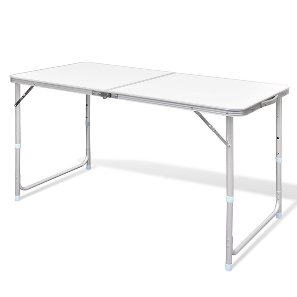 Bargene Portable Folding Camping Table, 1 Year Warranty. Always have a table on hand with this Small Portable Aluminium Fold-Out Table for Picnic / Travel / Camping / Party / Garden - 120cm x 60cm. Create extra table space in a matter of minutes. All-in-one unit construction that folds open and ready to use in seconds with no tools required. Great for picnics, parties, school halls, markets and various other functions and events. Light-weight construction making it easy to transport but sturdy enough to support your needs. It is also height adjustable to better suit your needs!