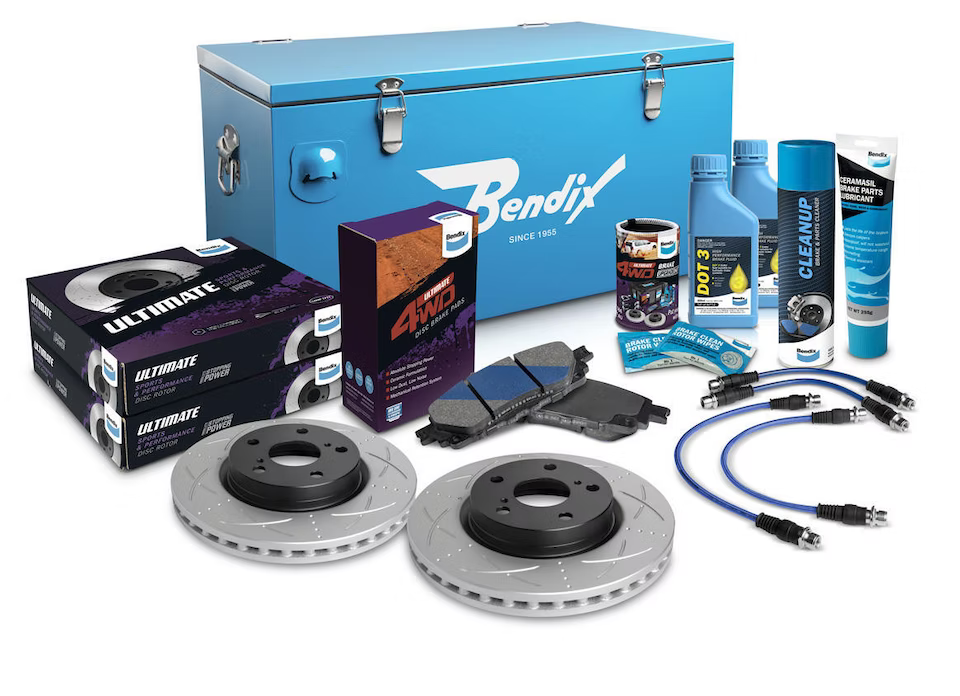 The comprehensive kit includes specially compounded high performance ceramic material brake pads for increased stopping power in extreme conditions plus the latest Bendix Ultimate Rotors designed and developed specifically for Australia’s demanding conditions.