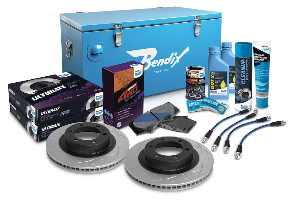 The comprehensive kit includes specially compounded high performance ceramic material brake pads for increased stopping power in extreme conditions plus the latest Bendix Ultimate Rotors designed and developed specifically for Australia’s demanding conditions.