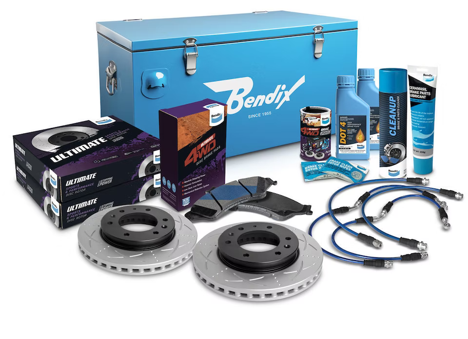 The comprehensive kit includes specially compounded high performance ceramic material brake pads for increased stopping power in extreme conditions plus the latest Bendix Ultimate Rotors designed and developed specifically for Australia’s demanding conditions.