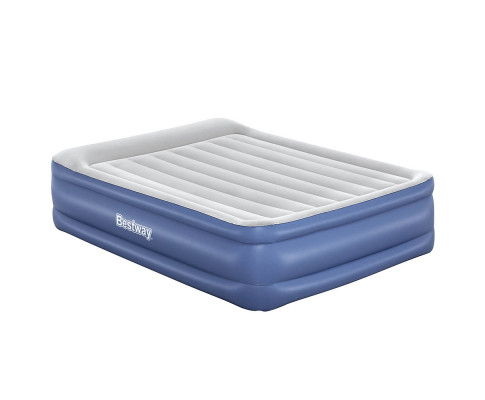 Bestway Queen Size Dark Blue & Grey Mattress with Built-in Pump, 1 Year Warranty. Featuring a comfortable flocked sleeping surface, the Queen size air bed provides a smooth and comfy sleep each and every night. Combined with a sturdy coil-beam construction and built-in electric pump, this quality air bed is suitable for both indoor and outdoor use. Inflates in just a minute plus, you will have an instant bed ready to go whenever the situation calls for a spare mattress. Portable, easy to store and effortless to set up, this convenient air mattress provides the perfect balance of comfort, practicality and affordability.