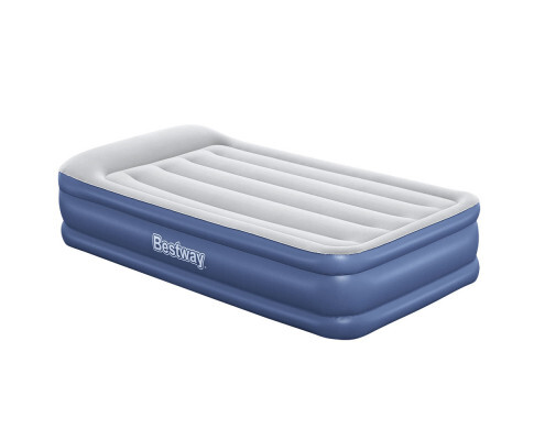 Bestway Single Size Mattress, 1 Year Warranty. Featuring a comfortable flocked sleeping surface, the single size air bed provides a smooth and comfy sleep each and every night. Designed with a sturdy I-beam construction, this quality air bed is suitable for both indoor and outdoor use. Inflates in just 300 seconds, You will have an instant bed ready to go whenever the situation calls for a spare mattress. Portable, easy to store and effortless to set up, this convenient air mattress can provide the perfect balance of comfort, practicality and affordability.