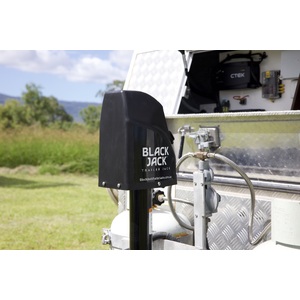 Black Jack MAXI Electric Trailer Jack with Clamp, 3 Year Warranty. The new generation of electric trailer jack technology. The Black Jack Maxi is a quantum leap in technology and represents the new generation of Black Jacks. Incorporating an Intelli-Brake motor that automatically cuts power to the jack at either fully retracted or fully extended. Remote control operation allows for easier hitching and unhitching and makes levelling your caravan a breeze. The new Black Jack Maxi boasts a ball bearing worm drive that is twice as efficient, faster and quieter, and generates a massive lift capacity of 2,000kg. All Black Jack Maxi’s come with a Pre-installed Anderson plug for easy “Plug and Play” connection.