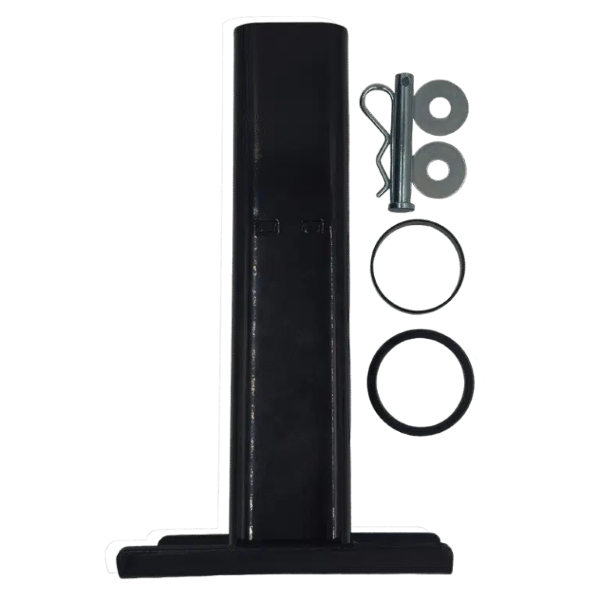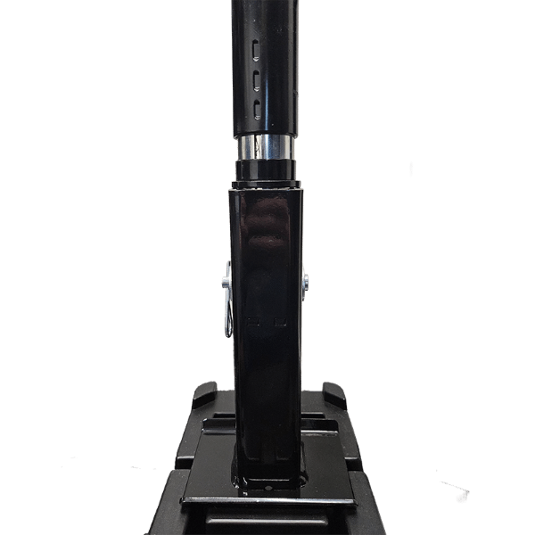 Black Jack Folding Foot for Mini, 3 Year Warranty. The amazing Black Jack Folding Foot Mini is designed to easily connect to the shaft of the Black Jack Mini in just a few easy steps. Simply remove the existing silver foot. Position and align the Mini Folding Foot in its place, add the collar and ring, and insert the pin in the holes provided. Makes operating the Mini faster and easier and improving your hitch and unhitch experience.