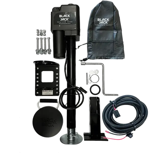 Black Jack MASTER Electric Trailer Jack with Harness Kit, 3 Year Warranty.  Gone are the days of manually winding the jockey wheel to raise or lower the caravan or trailer. The Black Jack™ Trailer Jack is the simplest, quietest and most advanced electric jack on the market today.