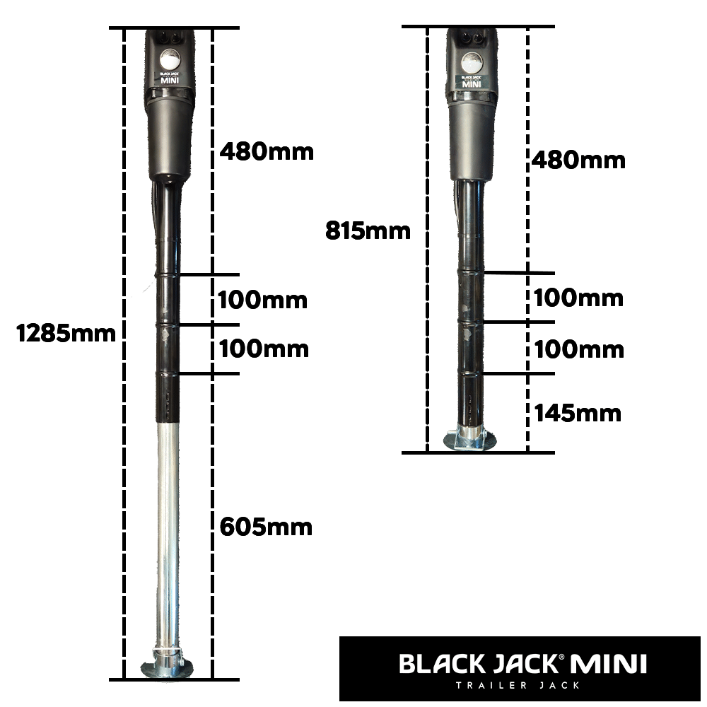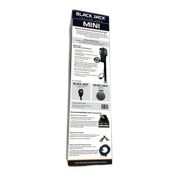 Black Jack MINI Electric Trailer Jack, 3 Year Warranty. Forget the cranking jockey wheel, just push a button and the Black Jack Mini Electric Trailer Jack does the hard work for you.