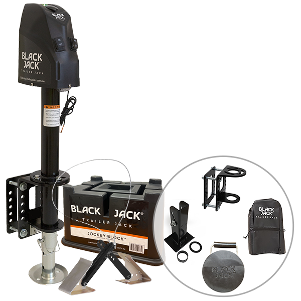 The Black Jack Jockey Block is the ultimate Jack Block for your Caravan or Trailer. It will save you up to 40 cranks of the jockey wheel. So much less stress and effort when hitching and unhitching. If you use it in conjunction with the amazing Black Jack then it will save you time, and you will be more stable.