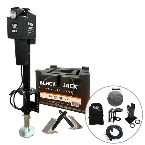 Black Jack MINI Electric Trailer Jack Bundle with Jockey Block, 3 Year Warranty