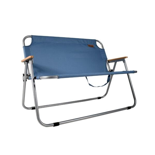 BlackWolf Captains Blue Double Folding Chair, Limited Lifetime Warranty. When the sun is setting and it’s time to relax, the Settlement Double Folding Chair from BlackWolf is the place to be with a friend. A timeless classic with a modern refresh, this chair is made from super strong 600D polyester, a steel frame, beech armrests and is built to last. This chair is also super convenient; folding down flat and finished with a built in carry handle to ensure the pack up is pain free.
