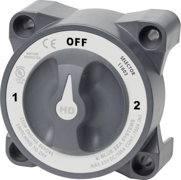Blue Sea HD-Series Selector 3 - 1-Off-2 Position Battery Switch with AFD, 5 Year Warranty.