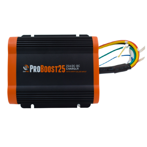 BMPRO ProBoost 12V 25A DC to DC Lithium Battery Charger with Solar Input, 2 Year Warranty. BMPRO’s ProBoost25 is a DC-DC battery charger that allows you to charge a secondary battery using solar panels and/or a towing vehicle’s 12V electrical system.