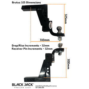 Brutus by Black Jack Adjustable Steel Hitch 325mm Drop, 1 Year Warranty.