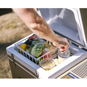Bushmans unique 35L – 52L extension kit is included. So you can adjust the fridge from 35L to 45L and right up to 52L. There’s separate areas for your frozen food, fridge items, crisper and tall bottles. And the 3 stacking baskets make it easy to access food that’s on the bottom.