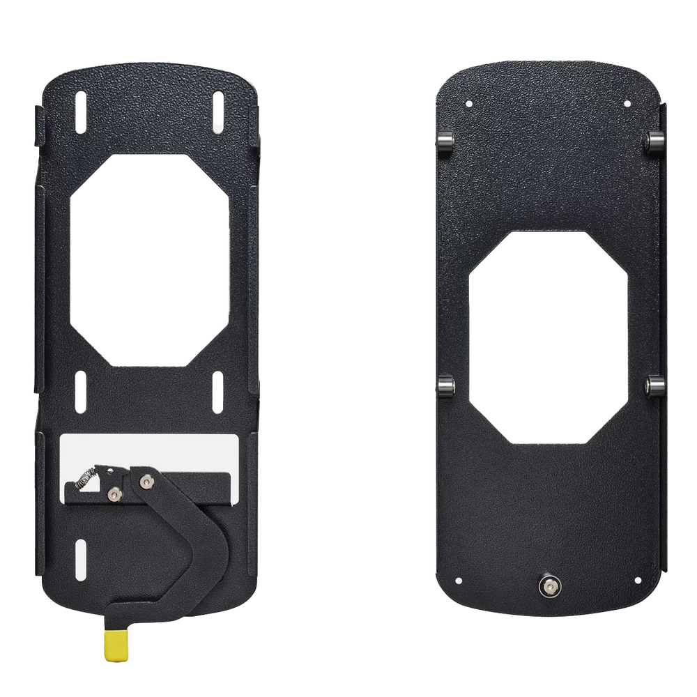 The Roadie quick release base bolts to the floor of your vehicle, a second base mounts to your Roadie, and the fridge is fastened firmly in place with a single positive locking lever.