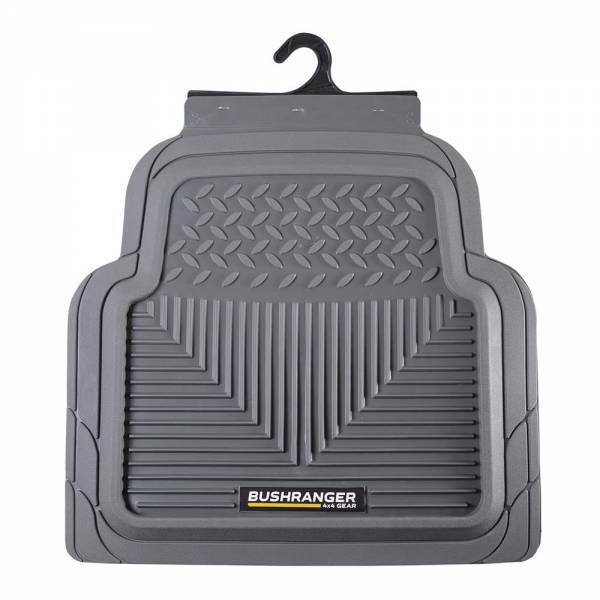 Bushranger Charcoal Mud Tamer Rear Floor Mats, 3 Year Warranty. The Bushranger® Mud Tamer Floor Mats are designed with deep edges to capture all the debris that is brought into the vehicle, from sand, dirt, mud, snow, even water can be contained within the mats. Made from a solid rubber construction that retains integrity and shape and easy to clean. A high perimeter ridge to keep debris enclosed from your interior material. The underside of mat features pips to prevent mat slippage. Generous size, they can also be trimmed to suit your foot well. Charcoal/Grey. 3 Year warranty.