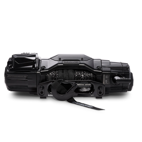 Bushranger Covert 12,000LB Synthetic Winch, 7 Years Warranty. The second-generation COVERT winch delivers advanced design, robust performance, and fast line speeds in a simple-to-fit package. Developed and tested in Australia, it features a unique built-in control unit, eliminating the need for an external control box for durable, unobtrusive installation.