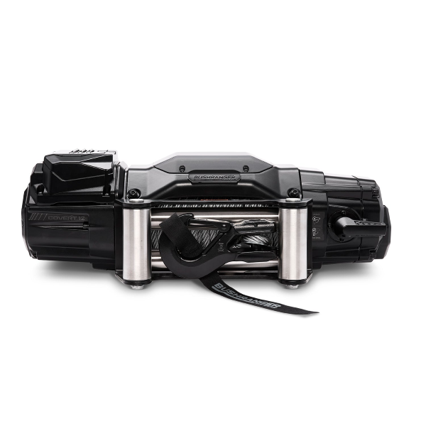 Bushranger Covert 12,000LB Wire Winch, 7 Years Warranty. The second-generation COVERT winch delivers advanced design, robust performance, and fast line speeds in a simple-to-fit package. Developed and tested in Australia, it features a unique built-in control unit, eliminating the need for an external control box for durable, unobtrusive installation.