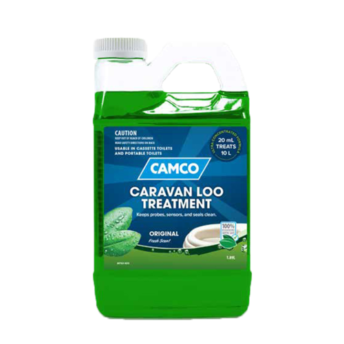 Camco Caravan Loo Treatment -18 Litre Fresh Scent Liquid. Camco Caravan Loo Treatment helps control unwanted odors in your waste water holding tank. The easy to use liquid contain a special and ultra-concentrated formula that helps digest waste, and a blend of fantastic-scented surfactant oils that trap unwanted odors in your tank, making your camping experience more enjoyable. The liquids are RV and marine approved and safe for all waste holding tanks—they’re even great for portable camping toilets!