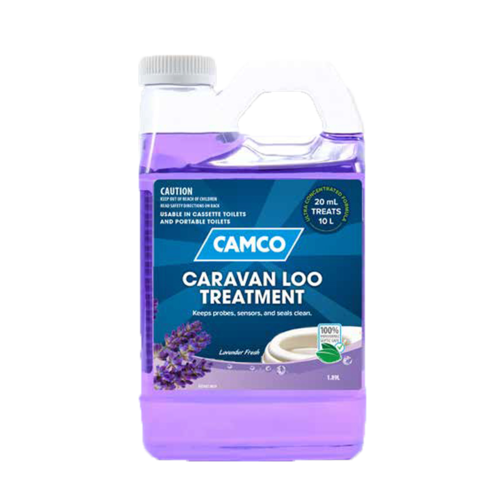 Camco Caravan Loo Treatment - Lavender Scent Liquid, 1 Year Warranty. Camco Caravan Loo Treatment helps control unwanted odors in your waste water holding tank. The easy to use liquid contain a special and ultra-concentrated formula that helps digest waste, and a blend of fantastic-scented surfactant oils that trap unwanted odors in your tank, making your camping experience more enjoyable. The liquids are RV and marine approved and safe for all waste holding tanks—they’re even great for portable camping toilets!