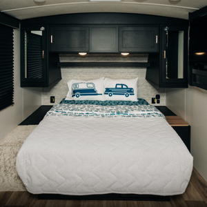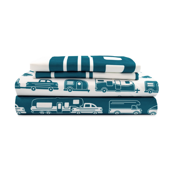 Camco Queen RV Bed Sheet Set, Blue. 53298, 1 Year Warranty. Show off your love of RVing with Camco's Life is Better at the Campsite RV Bed Sheet Set. Made for short RV Queen-size beds,