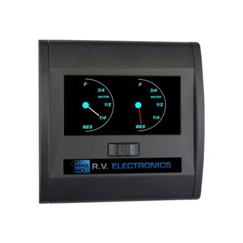 RV Electronics Double Tank LCD Water Tank Gauge, 1 Year Warranty. These new technology gauges have a coloured LCD analogue display with LED backlighting for crystal clear viewing. These gauges only draw 50 mA so they can be left on without flattening your on-board battery.There is a power on/off switch to turn the gauge off when the caravan is not in use