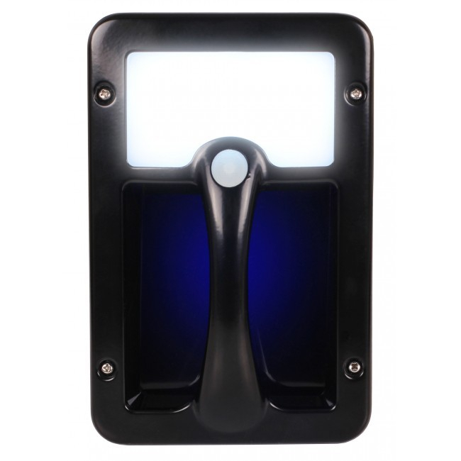 Camec Black Led Grab Handle With Blue Night Light Function, 1 Year Warranty. Features stylish ergonomic handle design for easy grip that is salt water & UV protected. Includes 42 LED cool white illumination light, soft blue LED night light,glow in the dark switch and optional output to activate a step light. Available in 3 finishes; direct replacement for Bargman style Handle Lights.