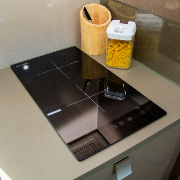 This induction cooktop can be installed into a bench top recess.