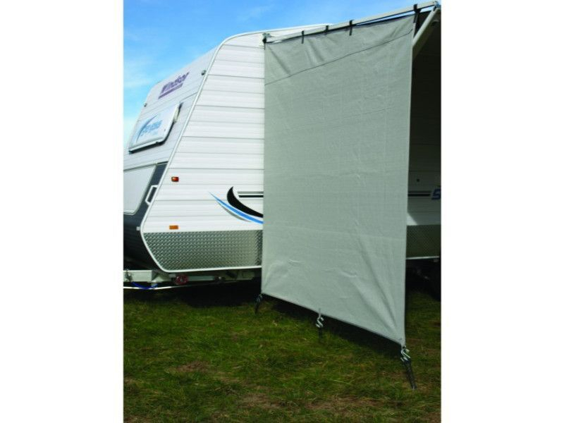Camec Privacy End Caravan With Ropes And Pegs, 1 Year Warranty. The Camec Privacy Screen End Wall is an ideal Caravan / RV accessory to add to any Roll Out Awning. It sets up in just a few minutes and offers privacy and shade without having to set up the traditional heavy canvas annexe walls.