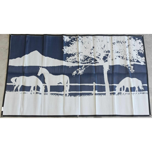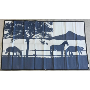 Love horses. This horse ranch mat is a favourite with horse lovers. Light grey and navy is great unique colour combination that is sure to stand out at your camp site.