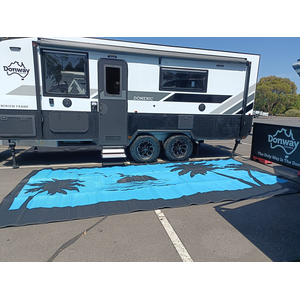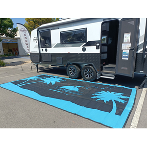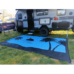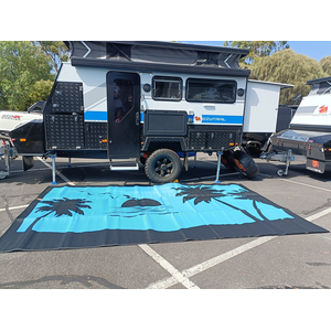 Blue and black looks great with so many setups. Check out the images of this awesome mat up against caravans.